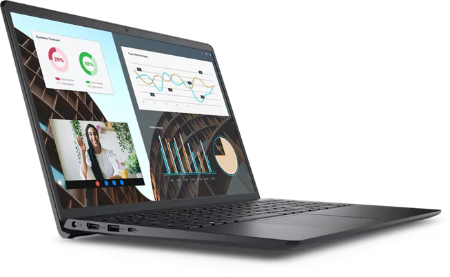 Pc portable DELL DC15250 Intel Core 3‑100U (6 cœurs) / Mémoire RAM : 8 Go DDR4 / Stockage SSD : ex. 512 Go M.2 PCIe NVMe / Écran : 15,6″ (15.6 inch), résolution Full HD (1920 × 1080) / Dalle IPS/WVA, taux de rafraîchissement jusqu’à 120 Hz / Luminosité typique ~250 nits / Carte graphique intégrée : Intel UHD Graphics / Connectique & ports : 1 × USB‑A 3.2 Gen 1 (5 Gb/s) - 1 × USB‑A (USB 2.0) - 1 × HDMI 1.4 - 1 × lecteur de carte SD / Batterie & alimentation : batterie 3‑cell, ~41 Whr intégrée / Alimentation secteur ~65 W / Poids maximum ~1,90 kg / Extensibilité & emplacements : deux emplacements RAM SODIMM / Garantie : 1 an