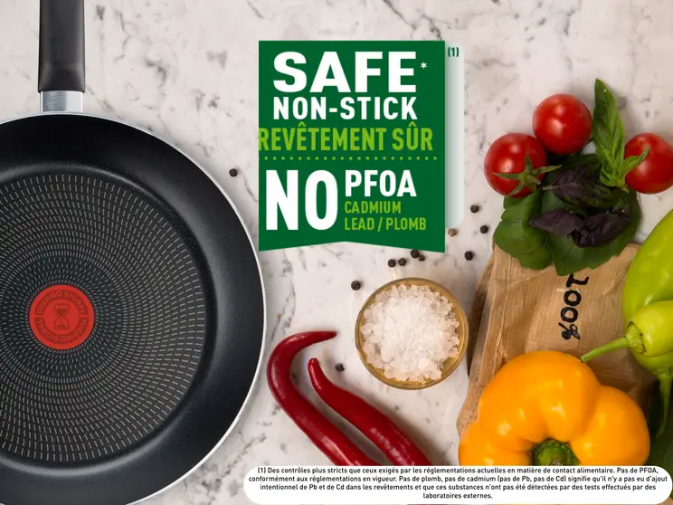 Diamètre : 28 cm / Matériau : Aluminium avec revêtement antiadhésif Titanium / Compatibilité : Tous feux sauf induction (gaz, électrique, vitrocéramique) / Indicateur de température : Technologie Thermo-Signal / Entretien : Compatible lave-vaisselle / Dimensions : 45,9 x 29,4 x 10,4 cm / Poids : 0,894 kg / Origine : Fabriqué en France / Cuisine saine : Revêtement sans PFOA, plomb ni cadmium pour une cuisson plus saine